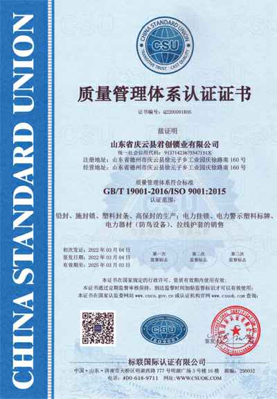 ISO9001认证证书